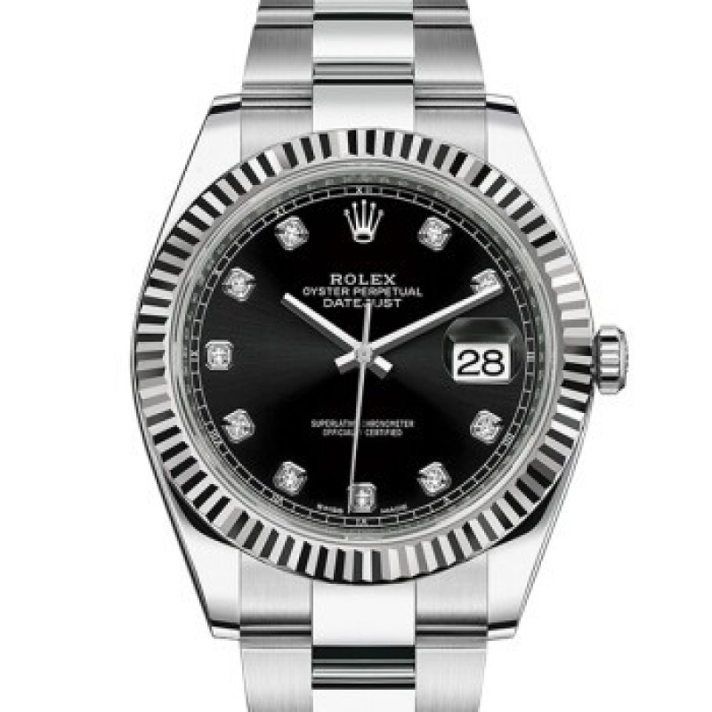 Swiss Rolex Watch Datejust 41 Series Automatic Mechanical Men's Watch M126334-0011 Black Disk With Diamond Three-Grid Chain